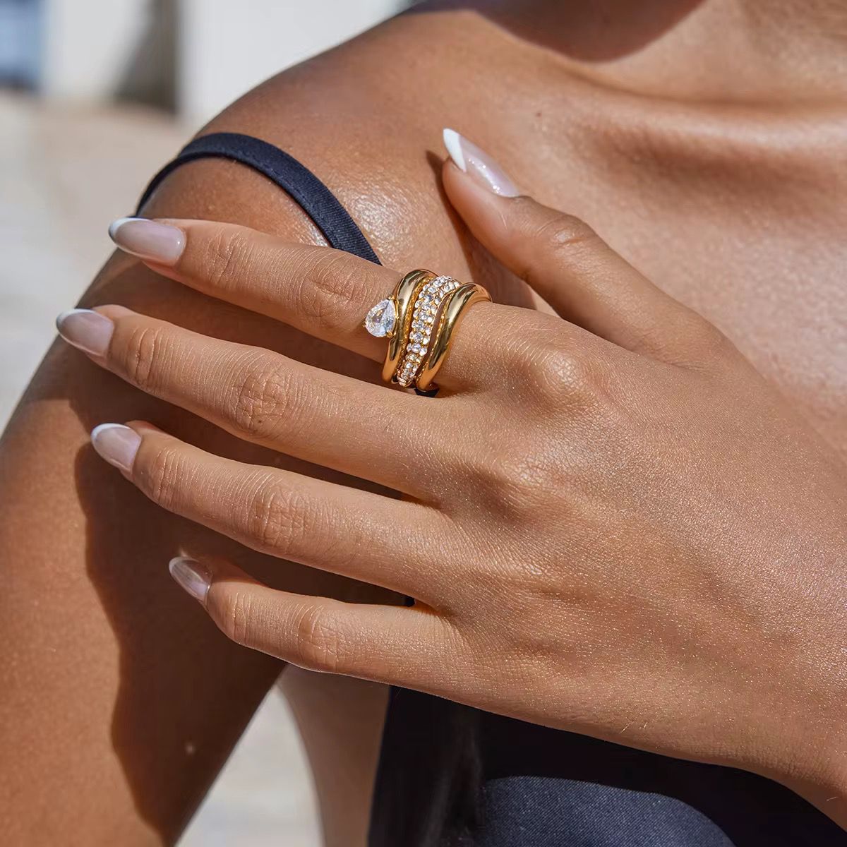 A: Cliste Couture ensures every piece, including the twisted zircon ring, is crafted with quality and style in mind. Our rings collection includes flower rings, snake rings and adjustable rings, giving you plenty of options to mix and match.