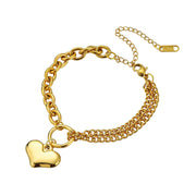 A: The Katya Heart Bracelet is designed with a delicate heart charm that adds a subtle romantic touch. Its lightweight chain and soft gold finish make it perfect for layering or wearing alone for a simple, elegant look.